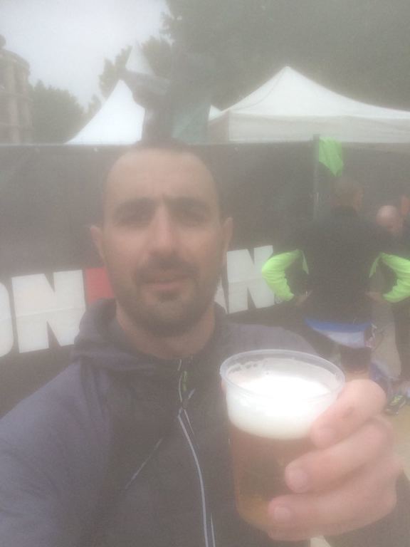 juju malgré le temps que l'on peut imaginer lève son verre à la santé des verts du Rochefort Triathlon