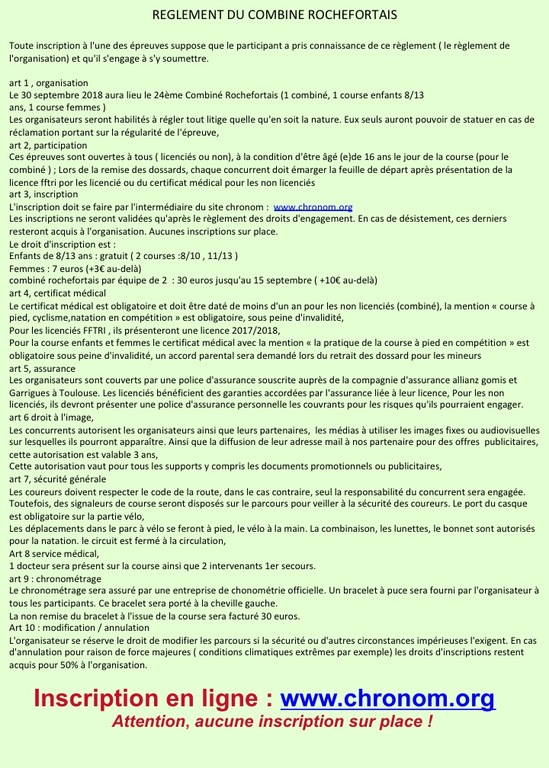 PLAQUETTE DU COMBINE ROCHEFORTAIS 2018